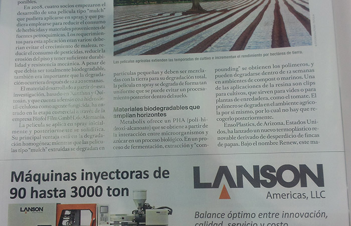 據官方公布數據,今年PLASTIMAGEN MEXICO 2014共吸引參展商850家,觀展人數達30,000人次。聯升54m2的展位被前往了解、咨詢的用戶圍得水泄不通。此外,我們在展館顯眼位置懸掛了聯升的宣傳海報,并在拉美地區最具影響力的塑料雜志TECNOLOGIA DEL PLASTICO登了廣告,借此媒介進一步提高聯升的品牌知名度與影響力。